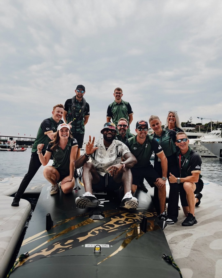 水上競速??詹姆斯現身摩納哥鼓勵旗下E1賽艇隊 與全隊合影留念